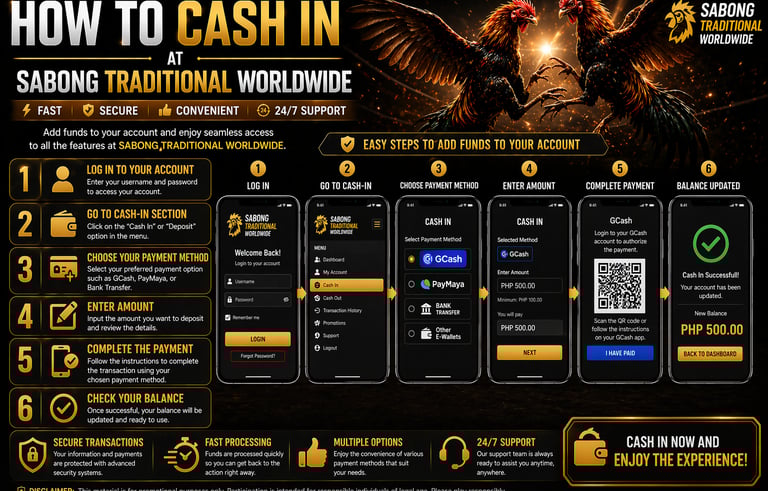 If you encounter any issues while cashing in, customer support is available 24/7. SABONG TRADITIONAL WORLDWIDE provides assistance anytime to guide you through the process and resolve any concerns.